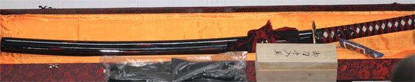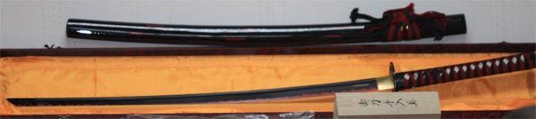COLLECTORS EDITION 41 INCH HAND FORGED SAMURAI SWORD **|**|** COMPLETE LENGTH WITH SCABBARD 41 INCHBLADE LENGTH 28 INCH SWORD HANDLE SOLID WOOD WRAPPED IN LIKE RAY SKIN AND HEAVY GAUGE COTTON FOR SUPERIOR GRIP BLADE MATERIAL HEAT TEMPERED HIGH CARBON STEEL BLADE SHARP TANG: FULL TANG WITH BLOOD CARVING LINE ON BLADE SCABBARD ; MSRP: $0