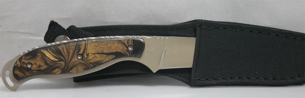 COLLECTORS EDITION 8.5" MAXAM FIXED BLADE HUNTING KNIFE **|**|** Maxam Fixed Blade Hunting Knife. Features polished stainless steel honed blade, faux tiger eye handle and nylon sheath with belt loop. Measures 8-1/2 ; MSRP: $0