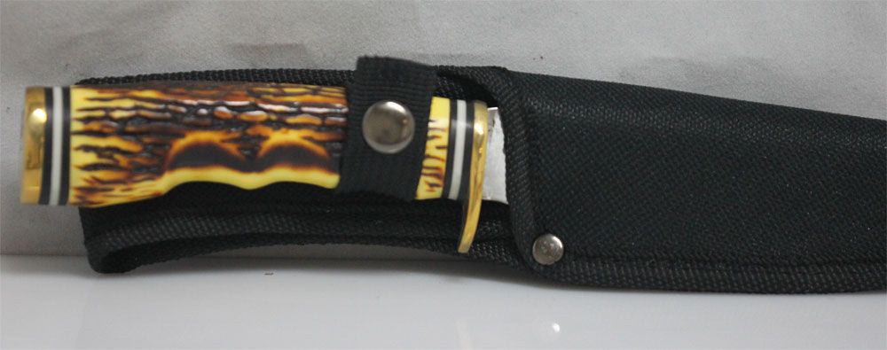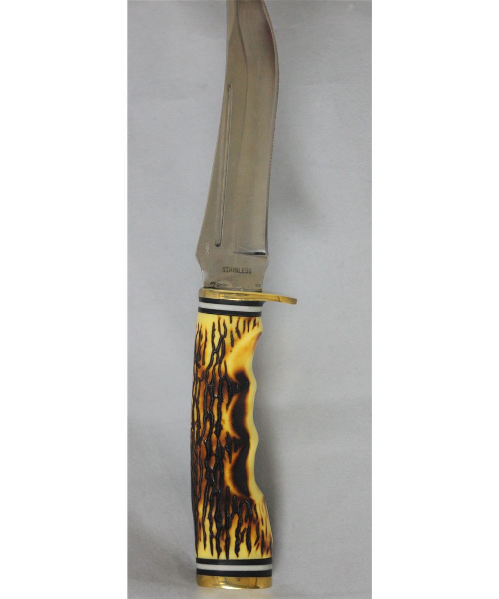 COLLECTORS EDITION 9.5" UPSWEEP HUNTING KNIFE **|**|** UPSWEEP HUNTER. 9.5" overall. Stainless steel blade. Imitation stag handle. Include a nylon belt sheath. Boxed. ; MSRP: $0