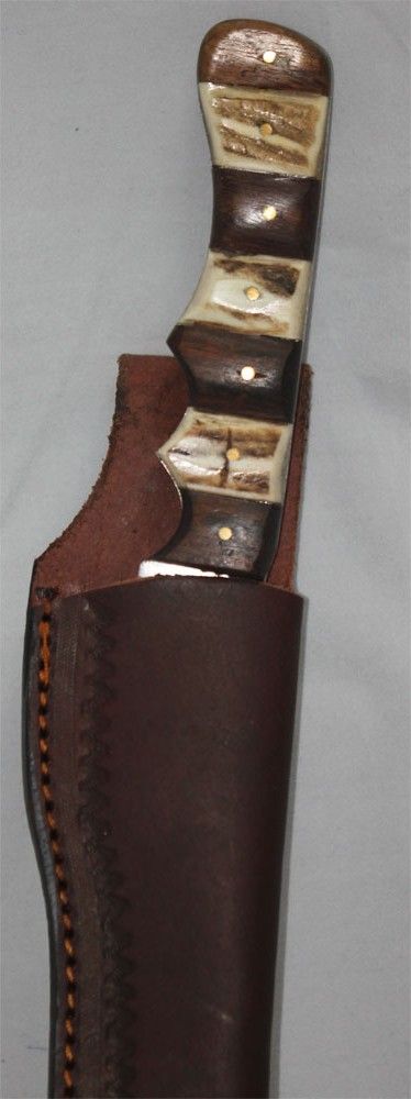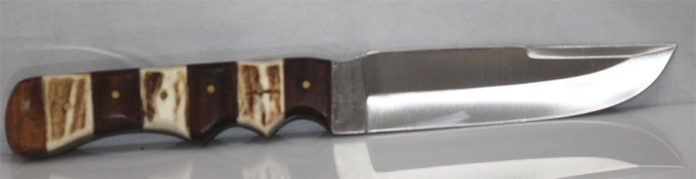 COLLECTORS EDITION 9.5" WOOD AND STAG HANDLED HUNTING K **|**|** 9.25" STEEL STAG HUNTING KNIFE. Wood and stag handle. Includes leather sheath ; MSRP: $0