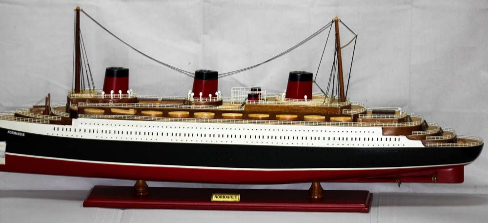 COLLECTORS EDITION HANDMADE T.S.S NORMANDY SHIP MODEL **|**|** COLLECTORS EDITION HANDMADE T.S.S NORMANDY WOODEN SHIP MODEL W/COA The T.S.S. NORMANDIE was one of the finest ocean liners ever produced -arguably the grandest ever. Second in size only to the Queen Elizabeth, running mate of the Queen Mary, the Normandie was created to represent the French nation and all it had to offer to the world ; MSRP: $0
