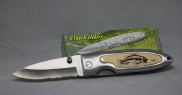COLLECTORS EDITION SCRIMSHAW BASS 3.5" CLOSED. STAINLES **|**|** 3.5" CLOSED BLADE; 6" OPEN, ALUMINUM HANDLE WITH CLIP, SCRIMSHAW LIKE DESIGN INLAID HANDLE; STAINLESS STEEL ; MSRP: $0