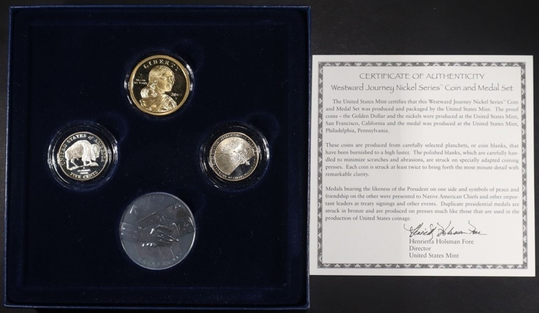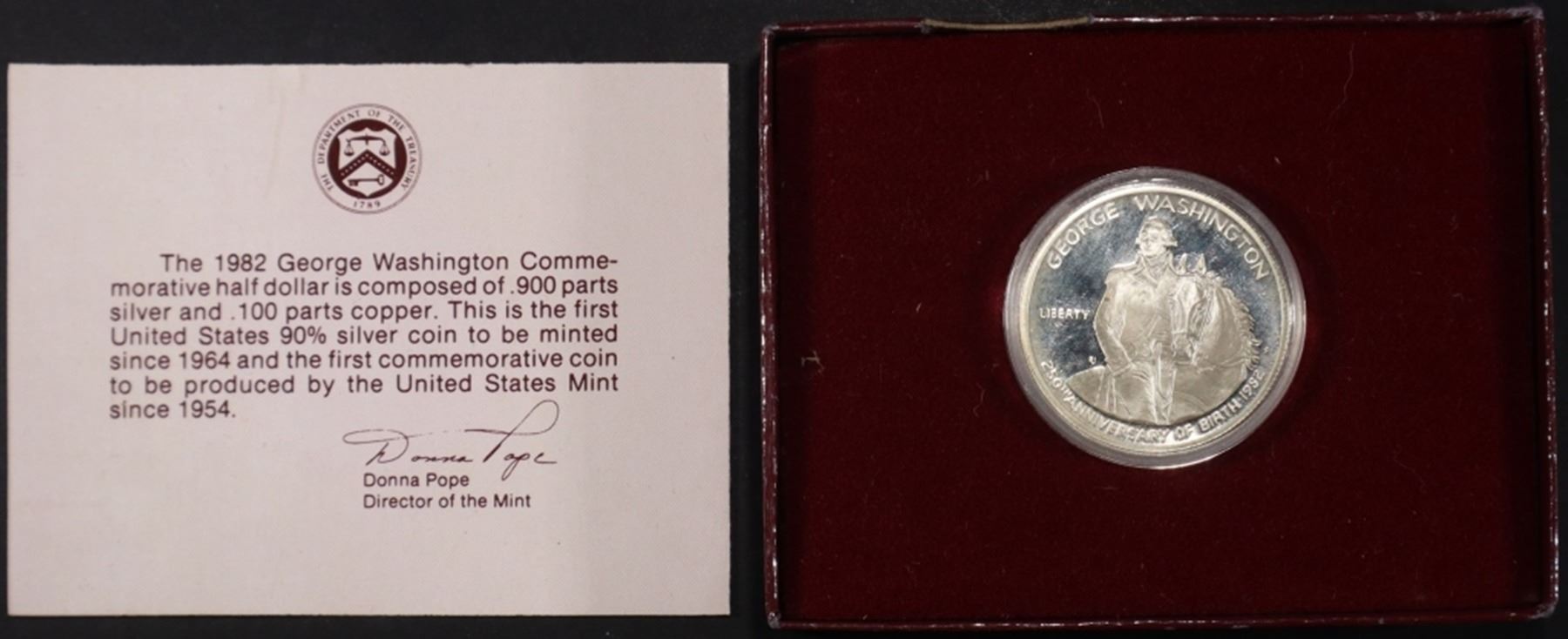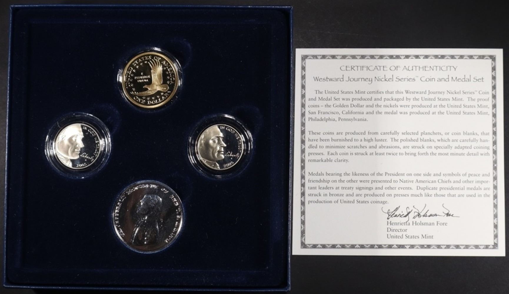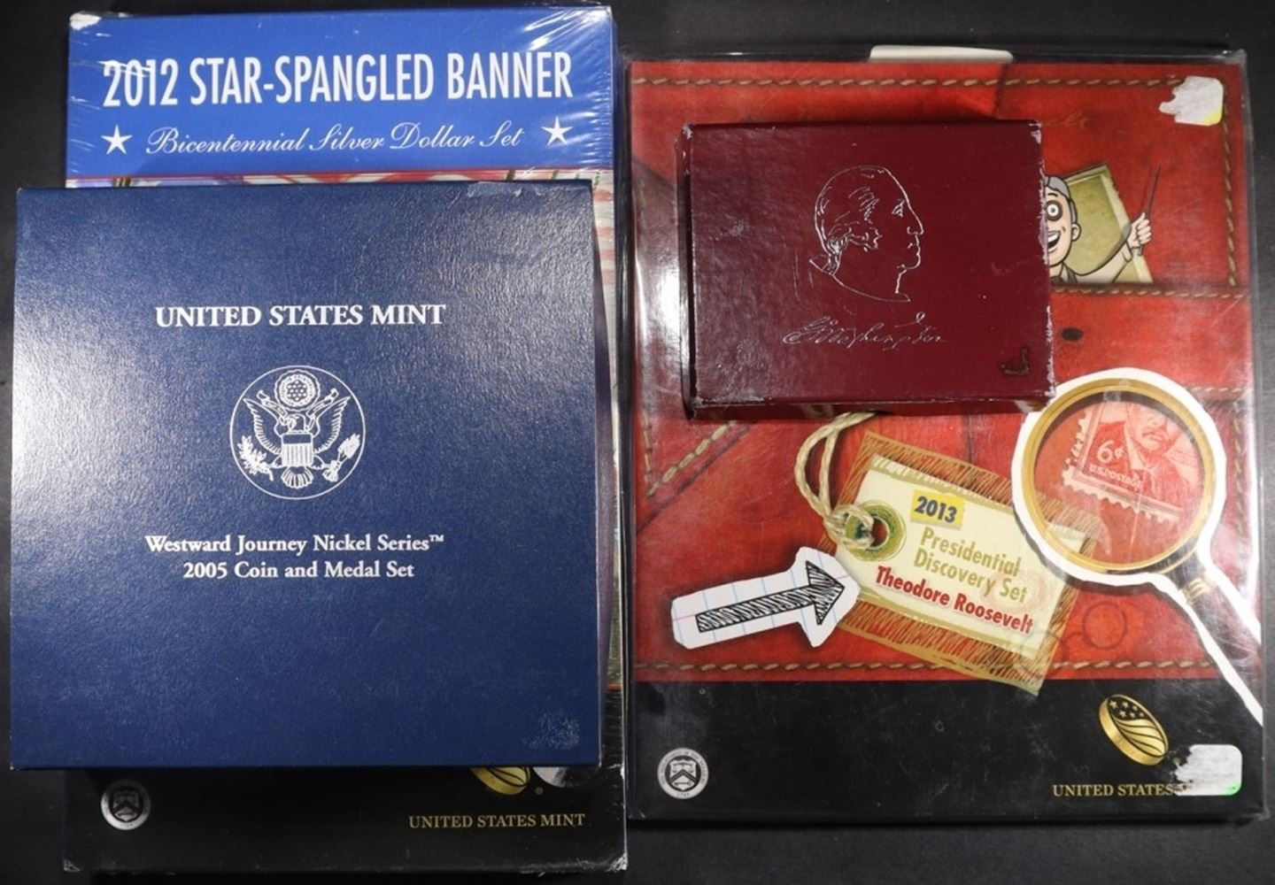 1982-S WASHINGTON COMM PR SILVER HALF DOLLAR, 2005 WESTWARD JOURNEY COIN AND MEDAL SET, 2012-P STAR-SPANGLED BANNER COMM PR SILVER DOLLAR SET, 2013 THEODORE ROOSEVELT PRESIDENTIAL DISCOVERY SET ESTIMATE $100 -