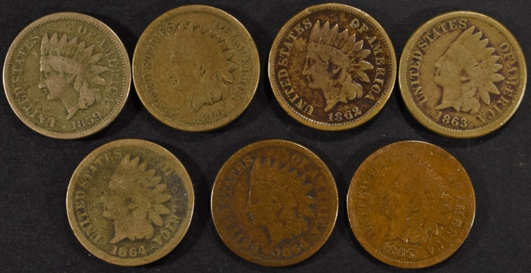 (1) 1859, (1) 1860, (1) 1862, (1) 1863, (2)  1864, (1) 1865 ESTIMATE $120 - $170.