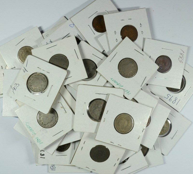 COLLECTORS LOT OF 54 COINS -- (11) SHIELD NICKELS, (21) "V" NICKELS,