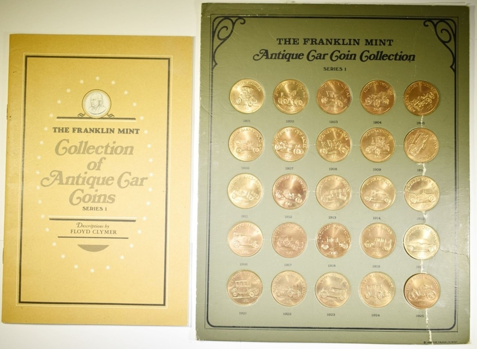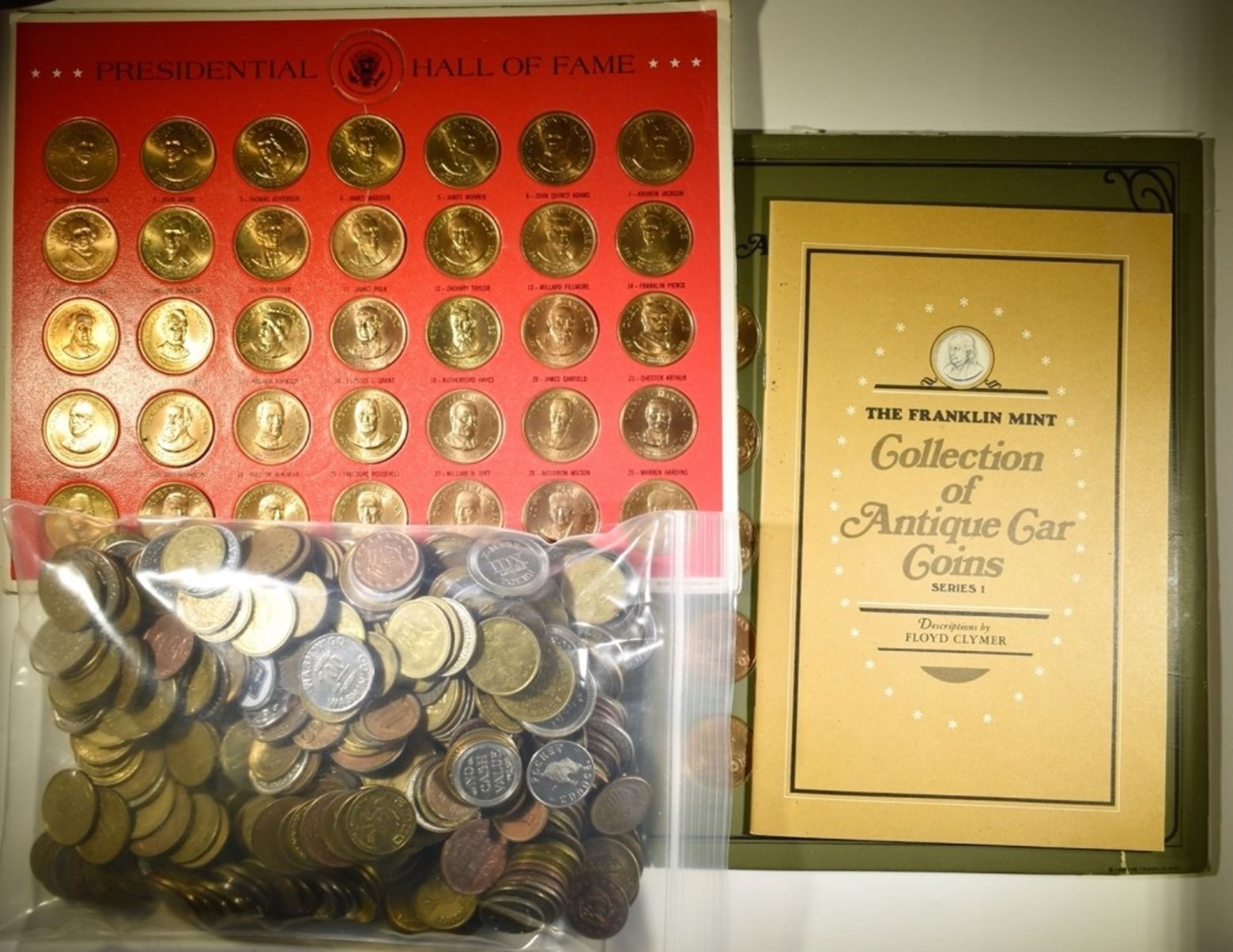 5 LBS MIXED TOKENS, FRANKLIN MINT 1968  PRESIDENTAL HALL OF FAME & COLLECTION OF  ANTIQUE CAR COINS W/BOOK.   ESTIMATE $60 -  $70. Location 0