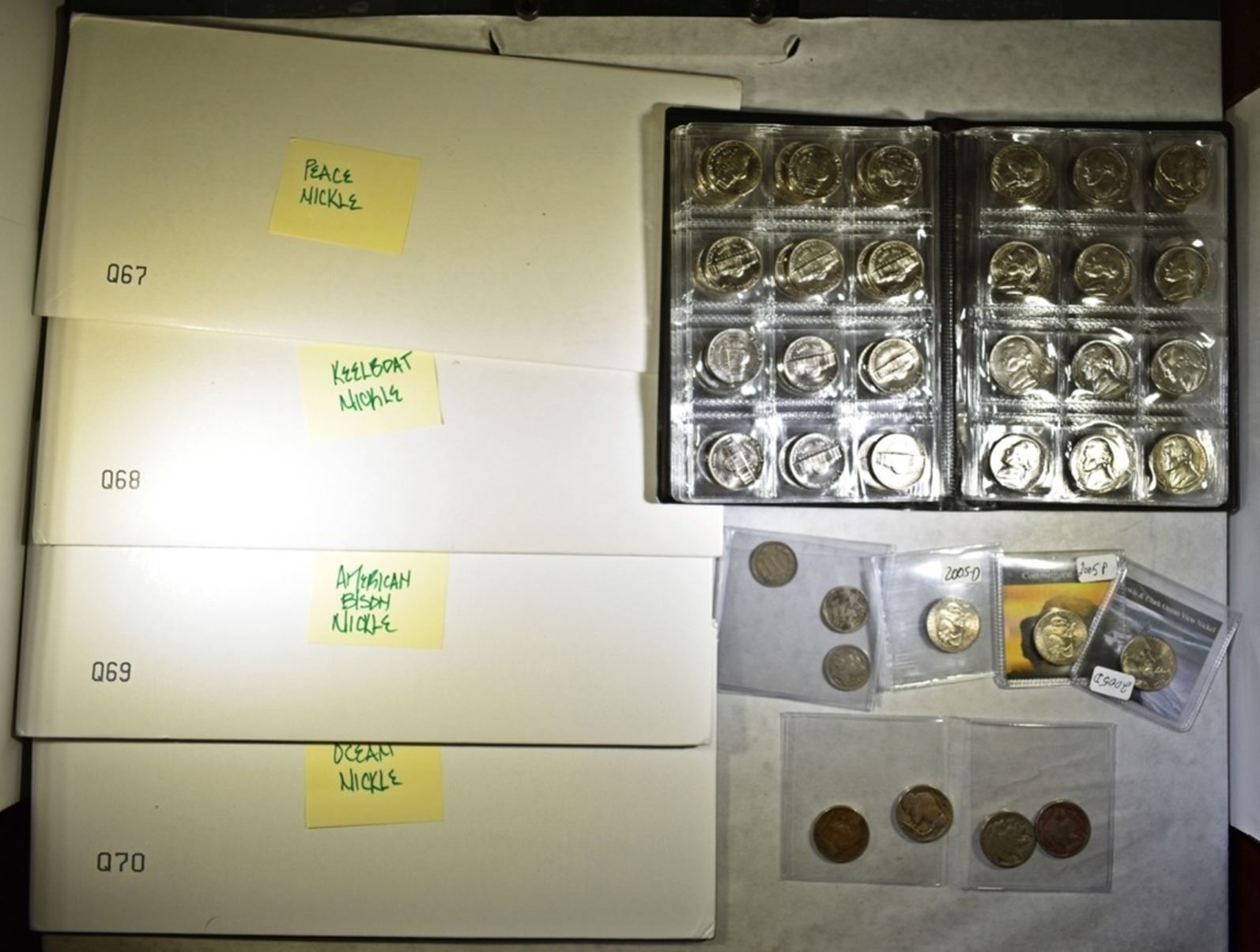 WESTWARD JOURNEY Q67-70 FIRST DAY COVERS, 2005-D OCEAN, 2005-P,D BISON JEFFERSON NICKELS, 4 BUFFALO NICKELS, 120 1968-D&S JEFFERSON NICKELS AND 3 3-CENT NICKELS. ESTIMATE $90 - $110.