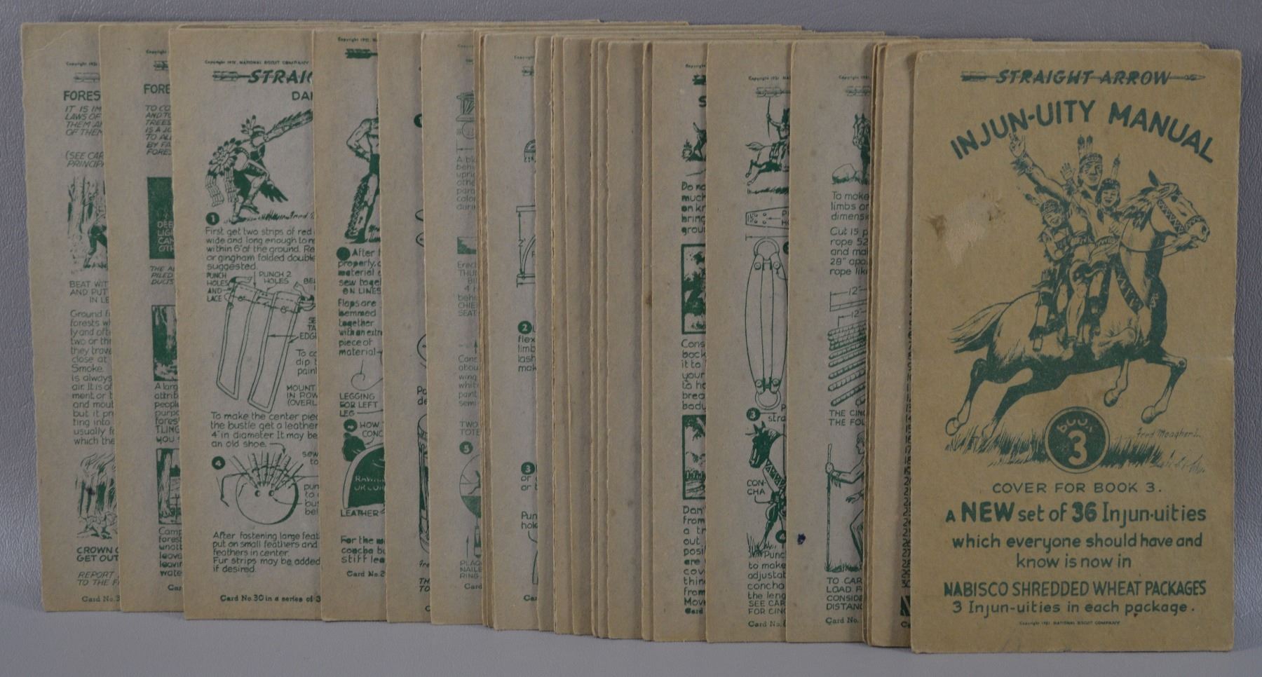1951 book number 3, complete set of 36 cards. 1952 book number 4, complete set of 36 cardboard cards. Produced by National Biscuit company, dispersed in Nabisco Shredded wheat package. Some pages have minor damage.