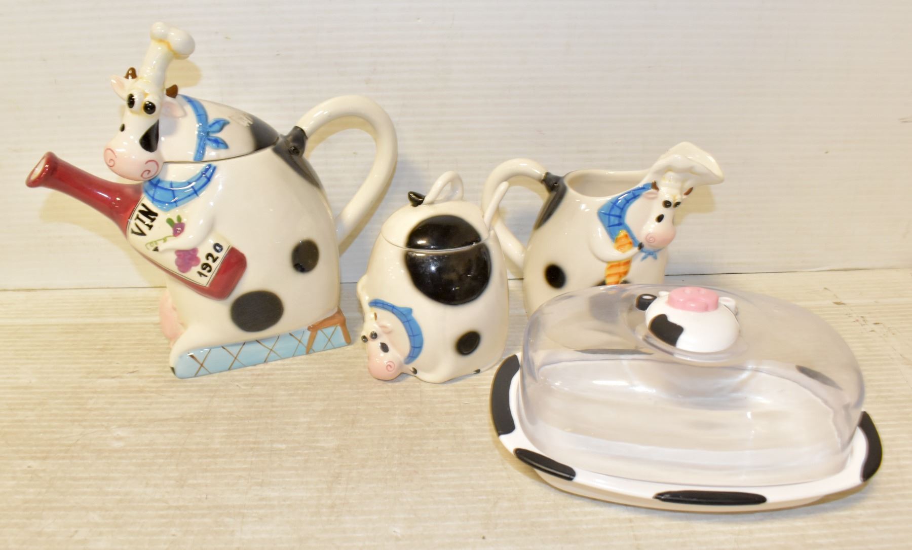 COLLECTRER COW TEA SET AND BUTTER DISH