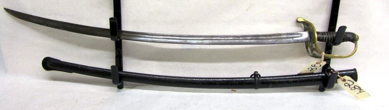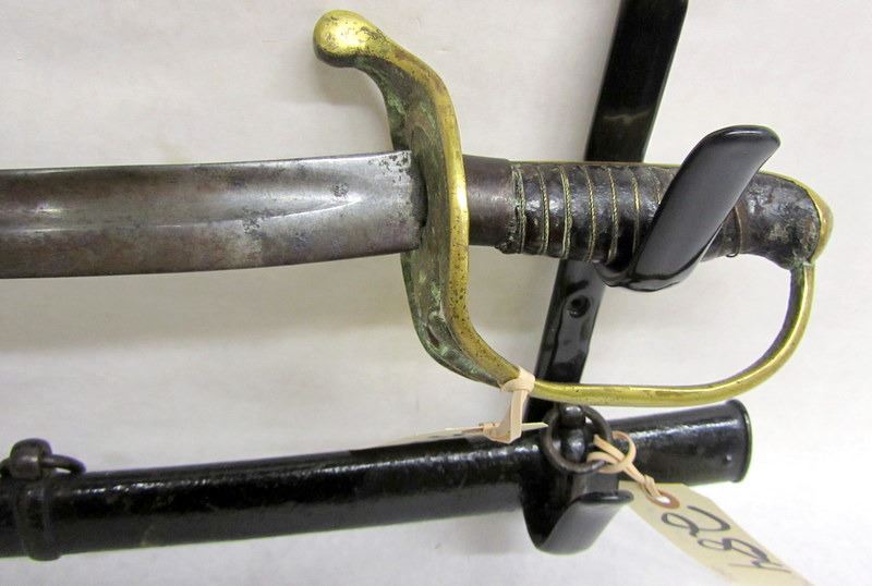 HANDLE AND BLADE ARE LOOSE. SCABBARD HAS BEEN PAINTED BLACK. BELIEVED TO HAVE BEEN MADE 1861-1862.