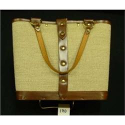 Vintage Enid Collins of Texas purse.  Jeweled bag.  No stones missing.  ID and leather change compartment inside.  Wood bottom.  Leather straps and trim.  Condition:  Very Good