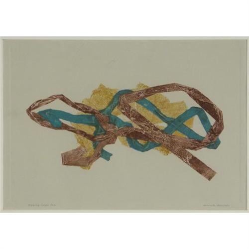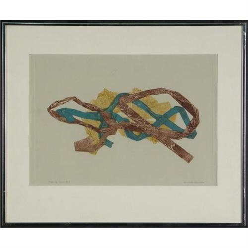 COLLOGRAPH MONOTYPE, Henriette Woessner (1905-), WA. ''Flowing Colors No.2''. Signed lower right. Titled lower left. Seattle Art Museum envelope to include rental price on the verso. Matted and placed in a metal frame. More info at the front desk. 12'' x 15.75''/ 18.25'' x 22.25'' framed.