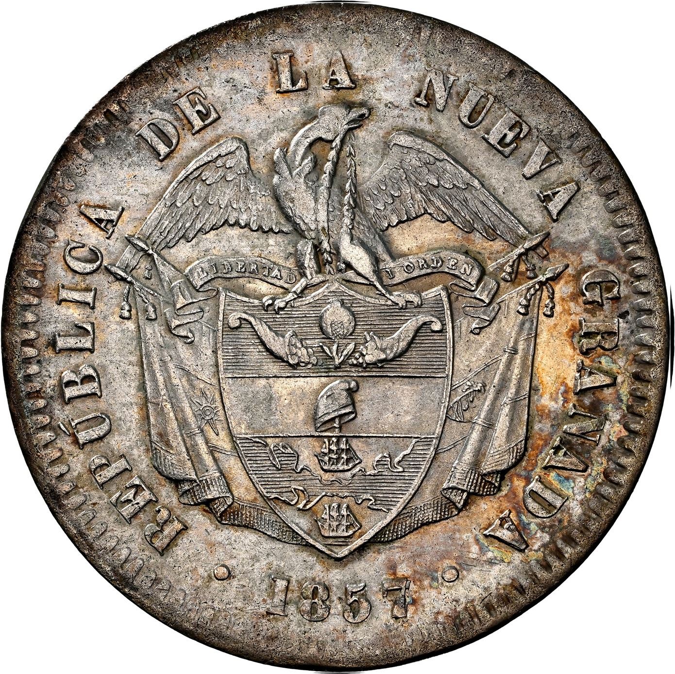 COLOMBIA, Bogotá, 1 peso, 1857, NGC AU details / cleaned,  top pop,  ex-Toulemonde.
