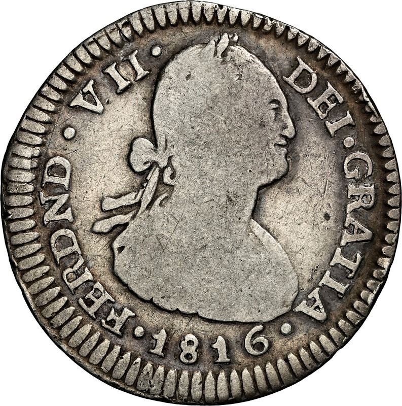 COLOMBIA, Bogotá, bust 1 real, Ferdinand VII (bust of Charles IV), 1816 FJ, NGC VG 8, ex-Becerra.
