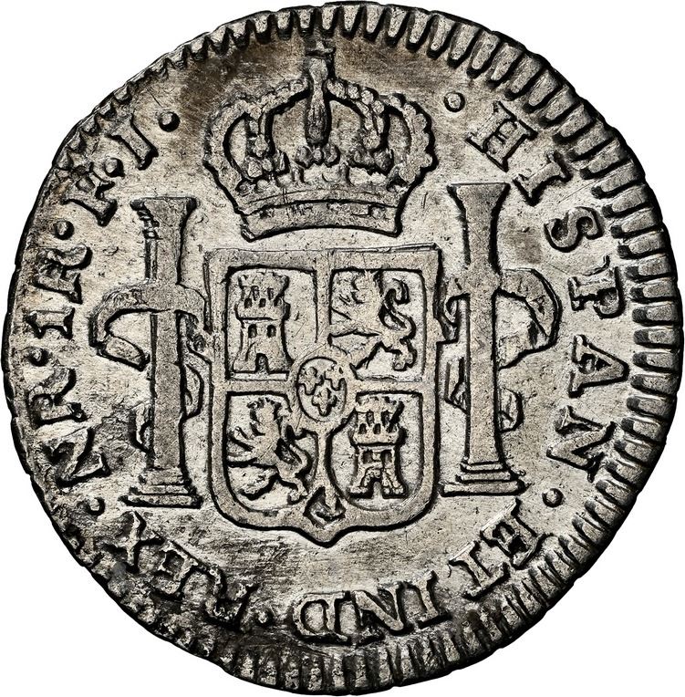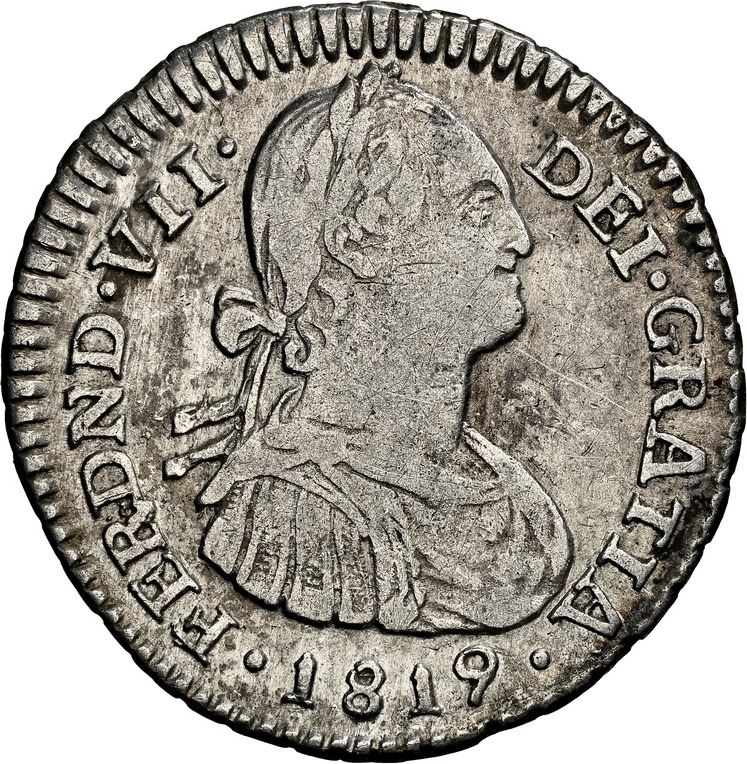 COLOMBIA, Bogotá, bust 1 real, Ferdinand VII (bust of Charles IV), 1819 FJ, NGC XF details / harshly