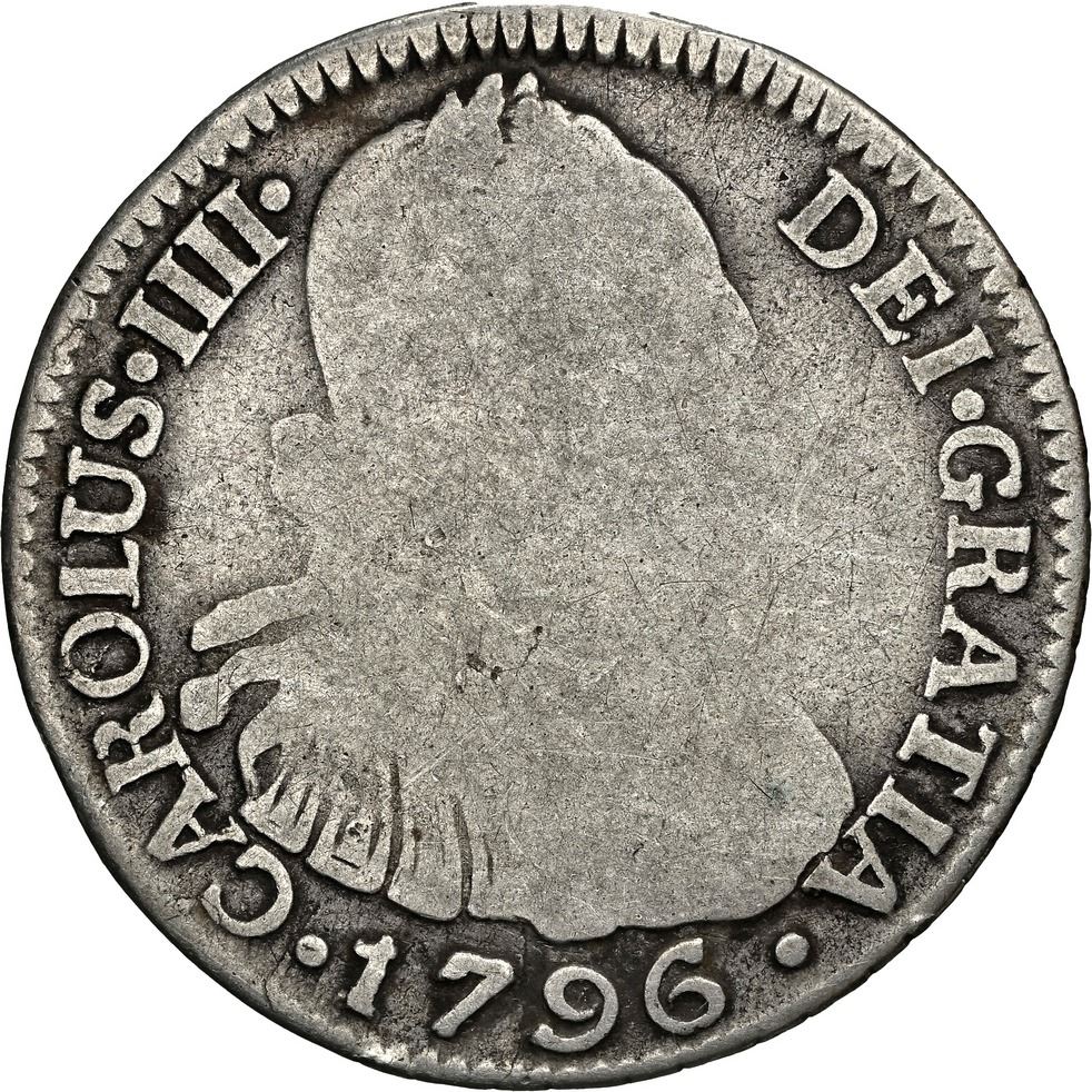 COLOMBIA, Bogotá, bust 2 reales, Charles IV, 1796 J•J, NGC AG 3, ex-Becerra.