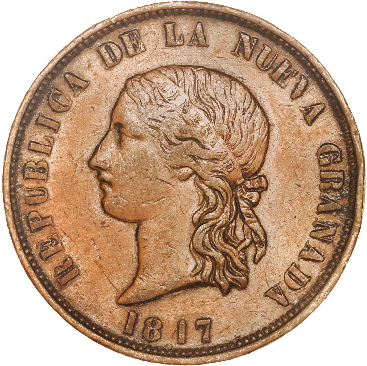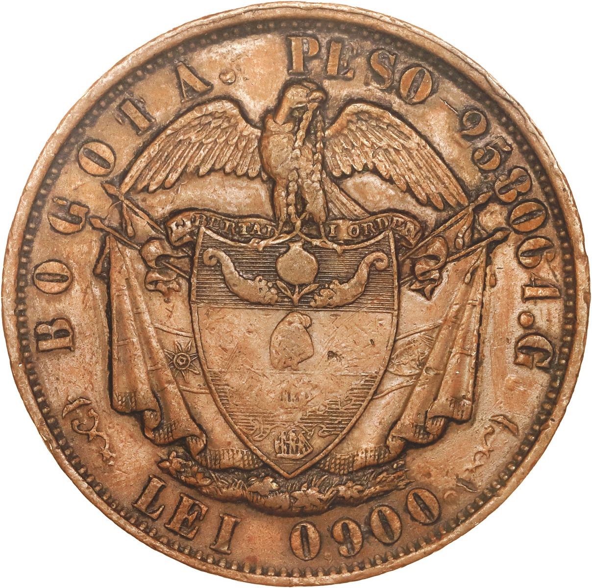 COLOMBIA, Bogotá, copper pattern for gold 16 pesos, 1847, DIOS LEI LIBERTAD on edge, ex-JEAS. Restrepo-24 (p. 171); KM-Pn6. 16.00 grams. Deep-brown AU- with minor old nicks, dark toning around details, pattern for the adopted design for the "PESO 25.8064" denomination equating to 16 pesos. Pedigreed to the JEAS Collection.