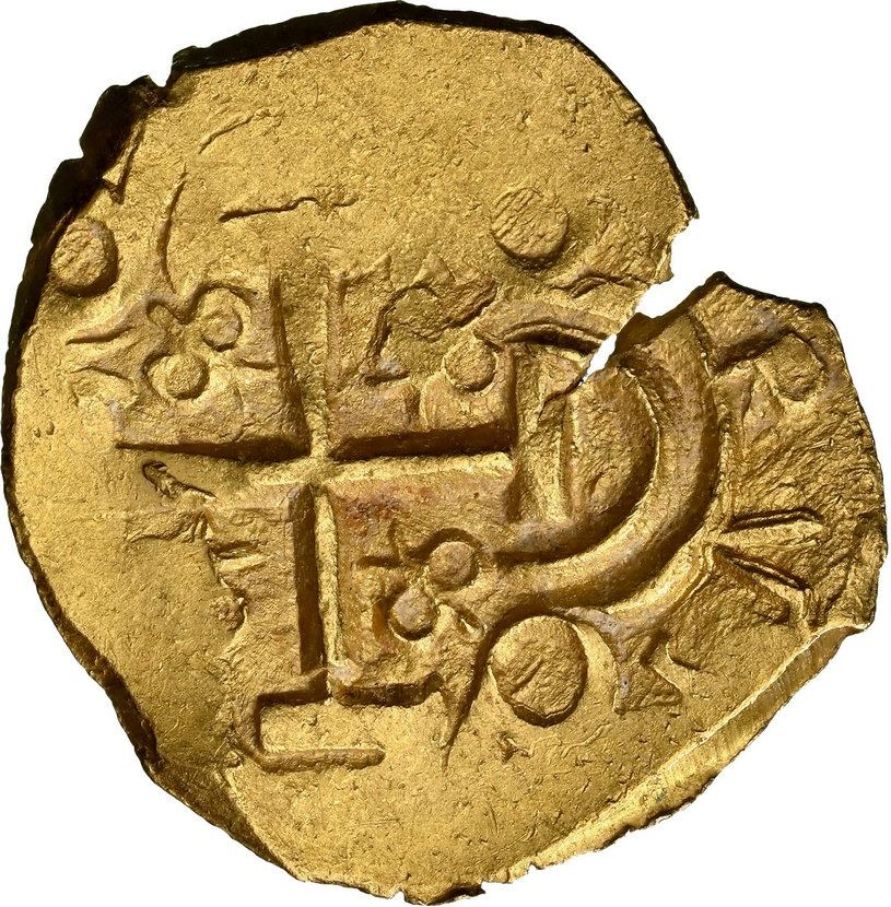 COLOMBIA, Bogotá, gold cob 2 escudos, Charles II posthumous, no assayer (Arce), NGC MS 62 (1715 Fleet Shipwreck Label). Restrepo-M66.32; S-B24; KM-14.2; Cal-Type 242 (under Ph. V); Fr-4a. 6.70 grams. Broad flan with full cross and most of shield, light encrustation in crevices, minor edge-crack. Recovered from: Spanish 1715 Fleet, sunk off the east coast of Florida