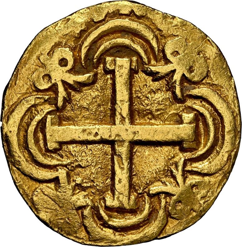 COLOMBIA, Bogotá, gold cob 4 escudos, Ferdinand VI, assayer not visible (S to right), mintmark FS to left (ca. 1750), NGC AU 58. Restrepo-M96.6; S-B27a; Cal-Type 117; Fr-12; KM-27. 13.44 grams. Choice full cross-and-tressure and shield (the latter slightly doubled) with very bold full F•S• to left, all well centered, with traces of light encrustation in crevices.