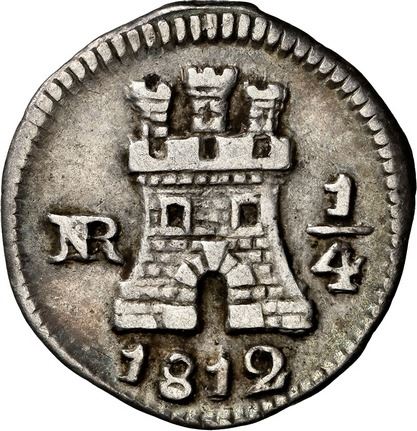 COLOMBIA, Bogotá, ¼ real, 1812, NGC VF 35, ex-Becerra.