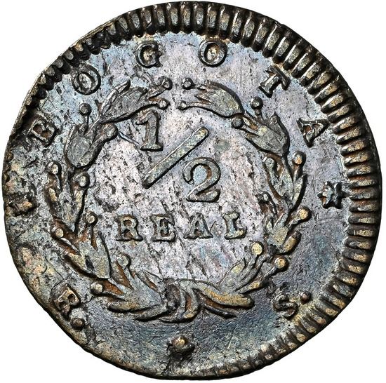 COLOMBIA, Bogotá, ½ real, 1846 RS, NGC XF 40, finest known in NGC census, ex-Toulemonde.