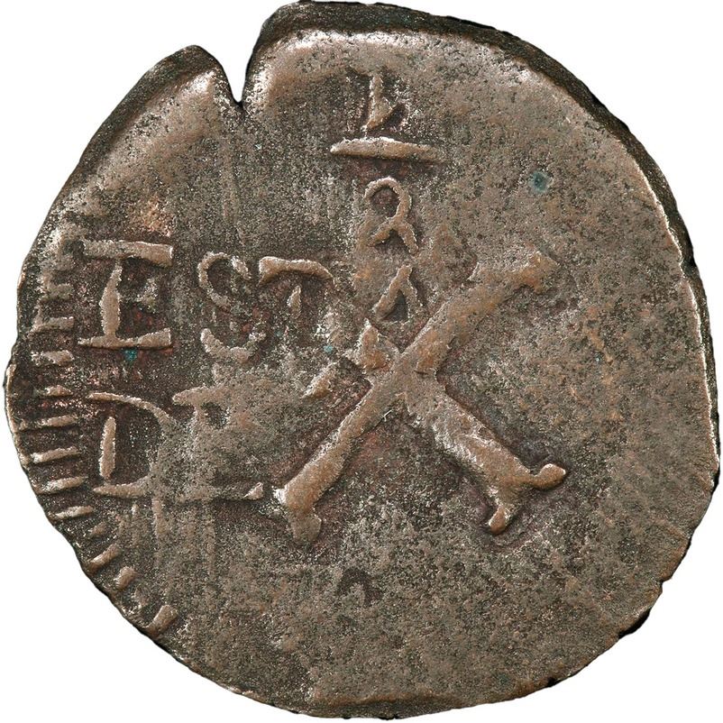 COLOMBIA, Cartagena, copper ½ real, Ferdinand VII, struck over a Cartagena provisional ½ real, no date (ca. 1815), rare, PCGS VF30. Restrepo-108.1; Cal-unl; KM-unl. Nearly full but off-center monogram, bold full cross with clear ½ and ESTA(DO) / DE of the under-coin, dark brown in color with typically slightly granular surfaces and flat areas, particularly rare with a numeric grade.