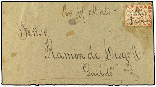 5 1890 Dirigida a QUIBOLO. 5 c. rojo, matasellado a tinta RIO SUCIO.