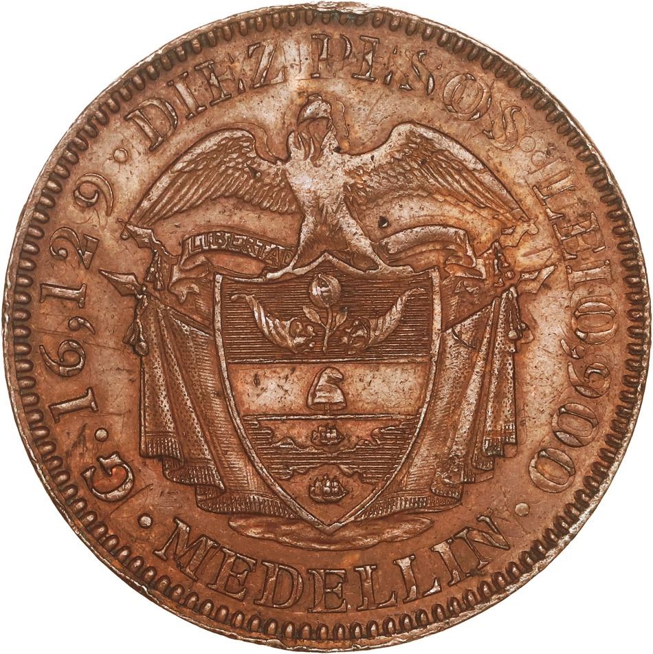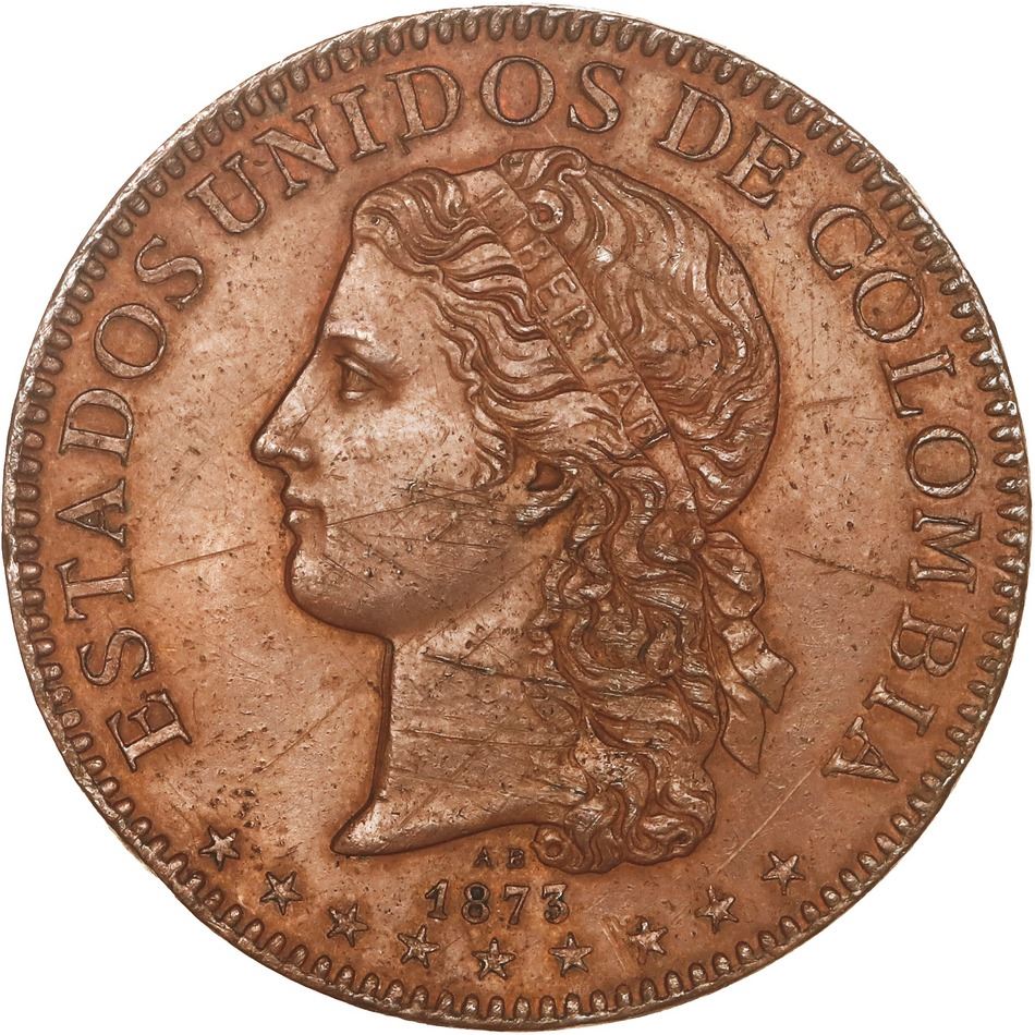 COLOMBIA, Medellín, bronze pattern for gold 10 pesos, 1873, Barré bust (AB below), ex-JEAS.