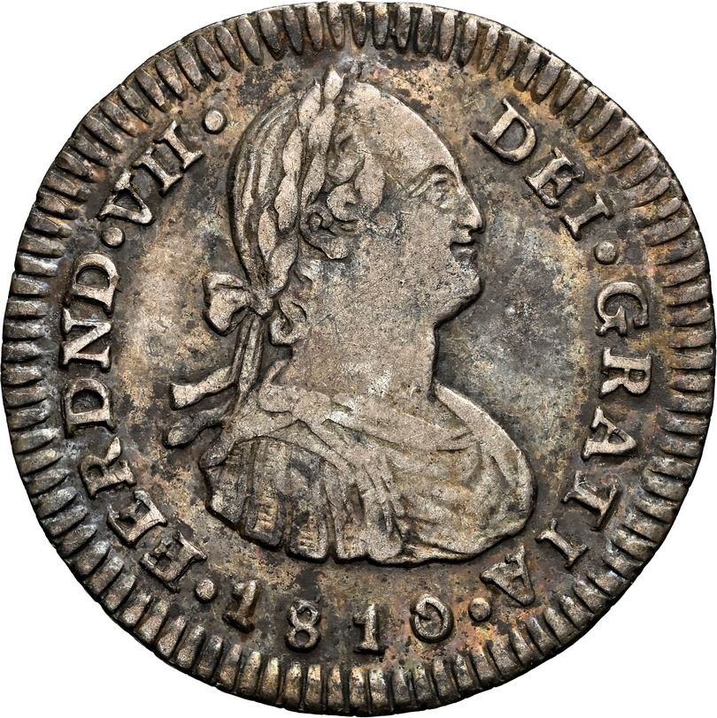 COLOMBIA, Popayán, bust 1 real, Ferdinand VII, 1810 JF, NGC VF 30, ex-Becerra. Restrepo-112.1; KM-68.2; Cal-630. First year of issue for this two-year type. Broad, boldly struck piece with dark mottled toning of dark gray, blue, and golden hues. Pedigreed to the Becerra Collection (stated on label).