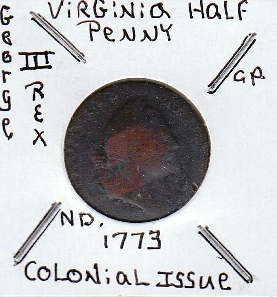 COLONIAL ISSUE VIRGINIA HALF SCARCE!!! 1773 RED BOOK p43