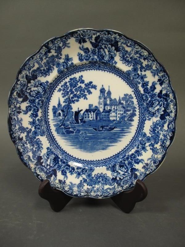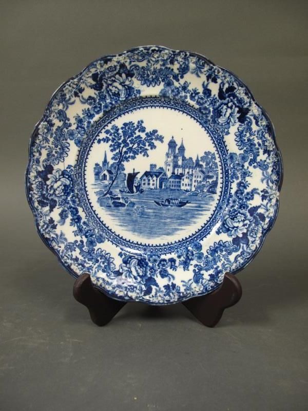 -19th century, transfer decorated wth boating scene and outer floral band.