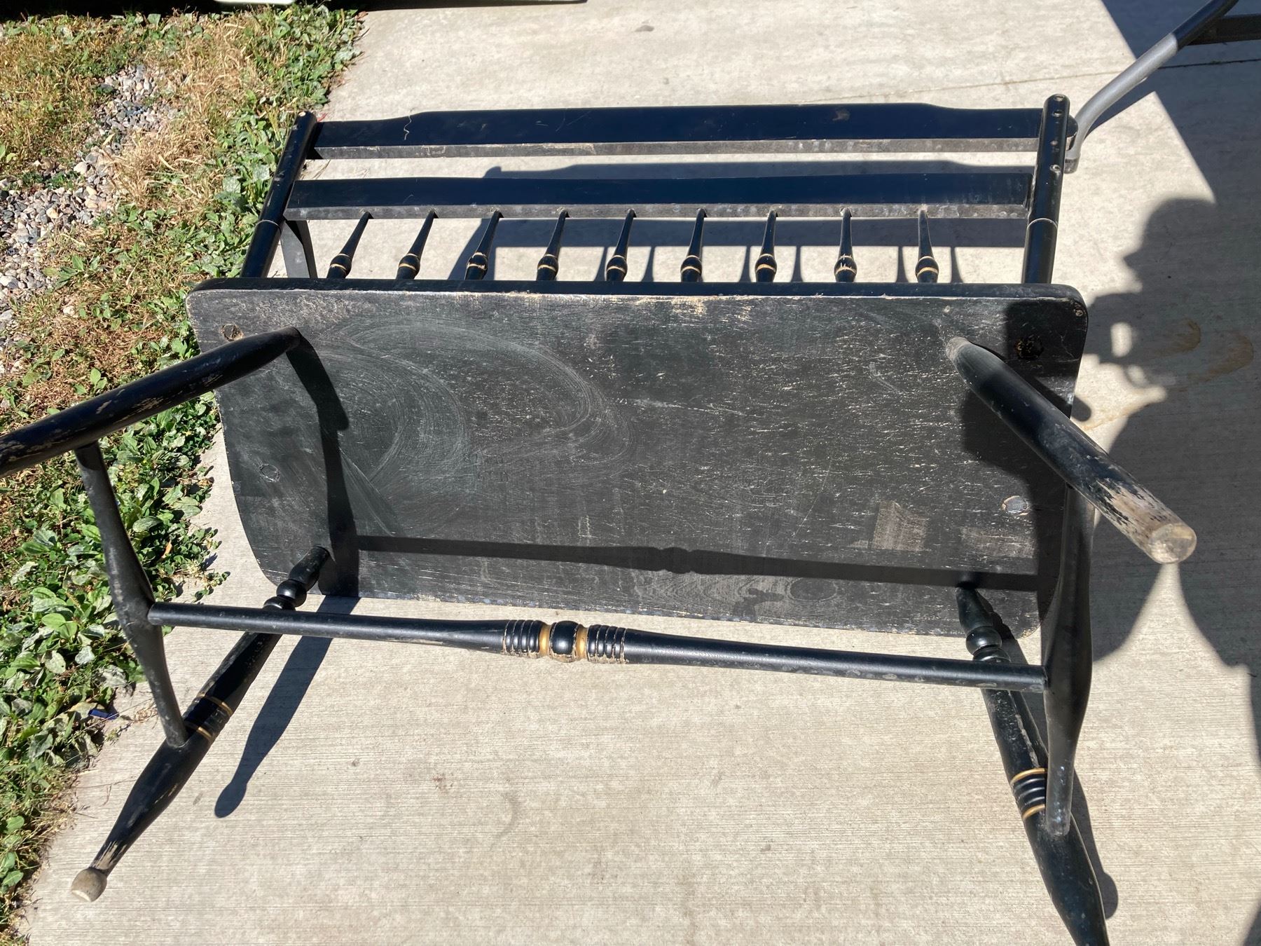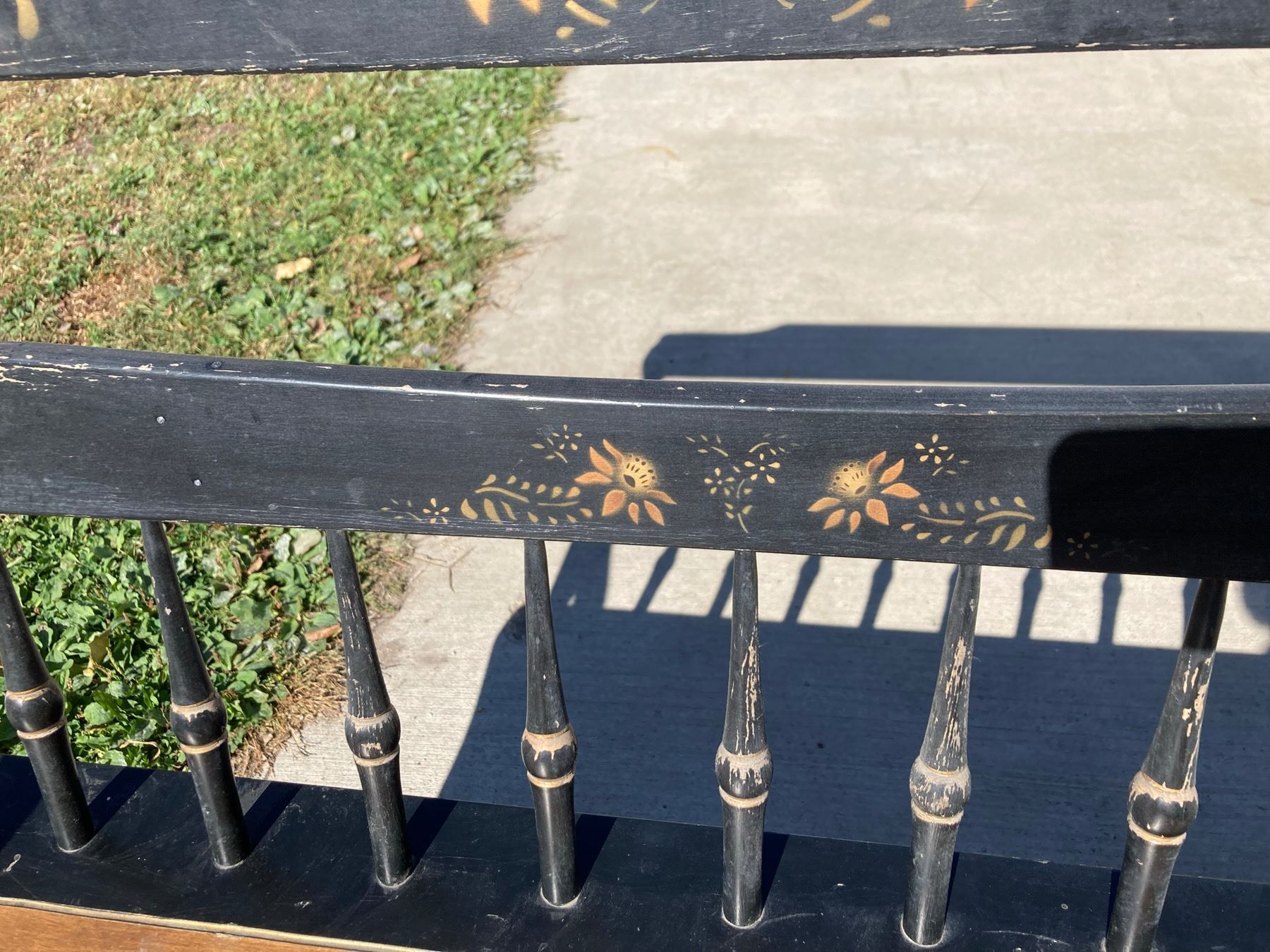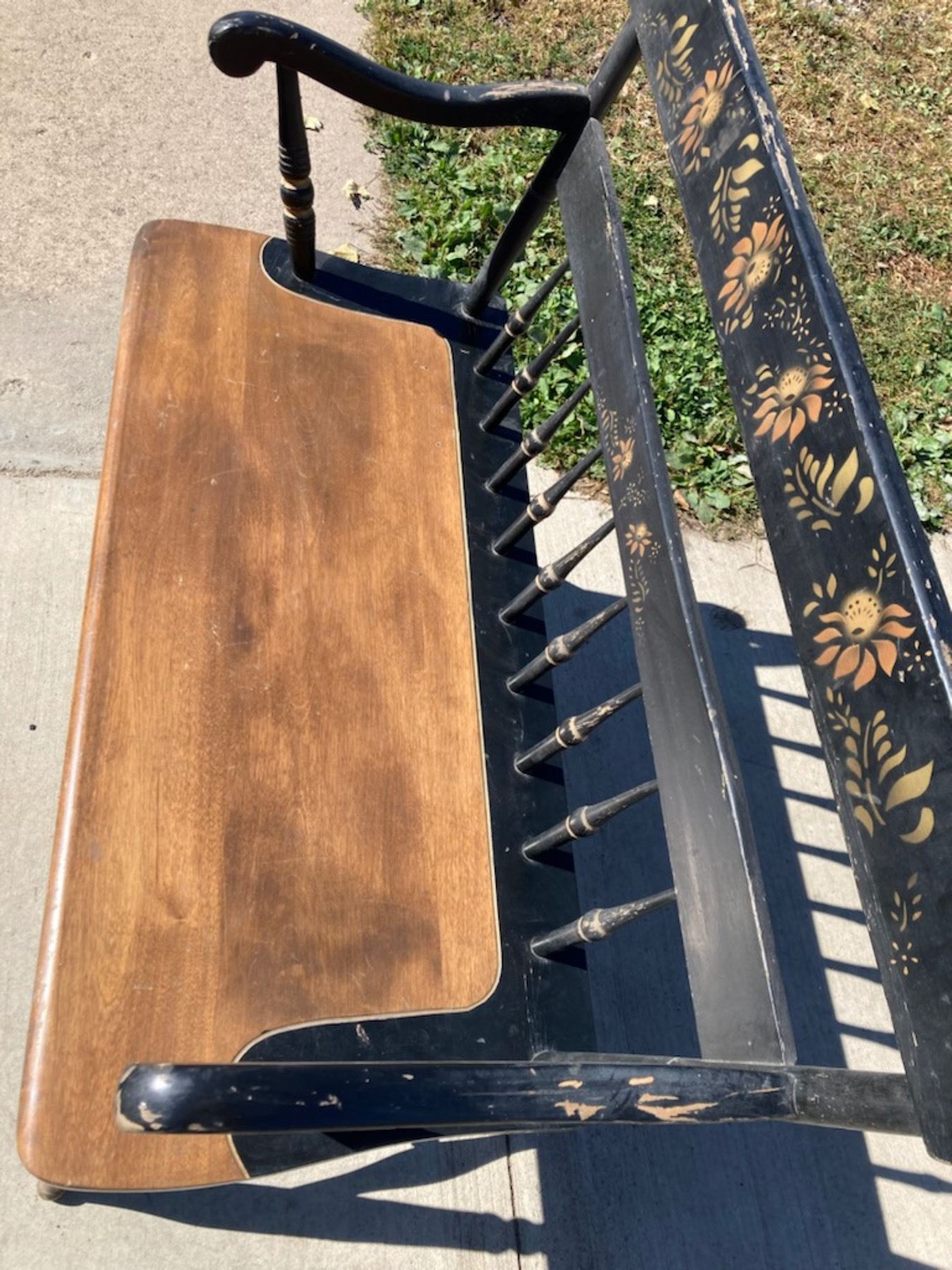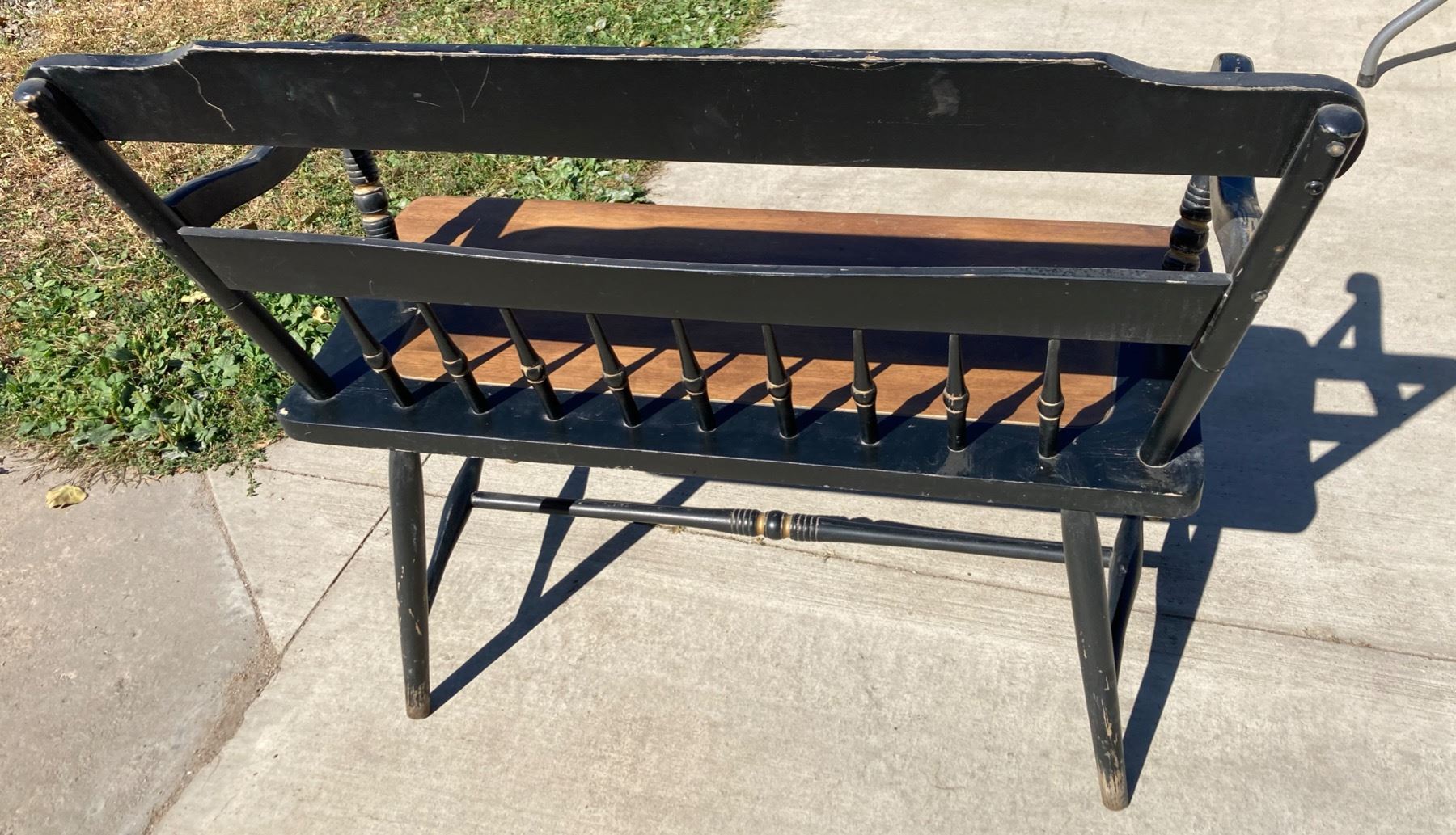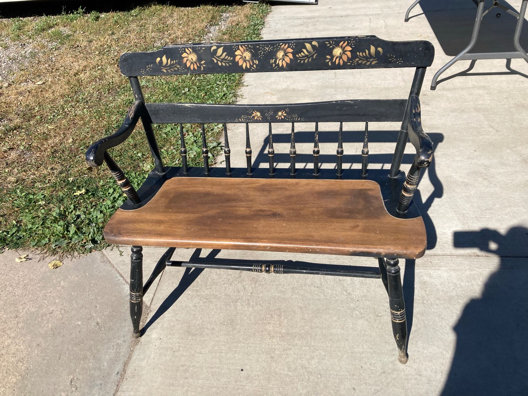 COLONIAL STYLE DEACON'S BENCH WITH GOLD STENCILING AND GOLD ACCENTS