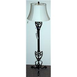 COLONIAL STYLE WROUGHT IRON FLOOR LAMP, having a pierced scrolled base, resting on scrolled feet…