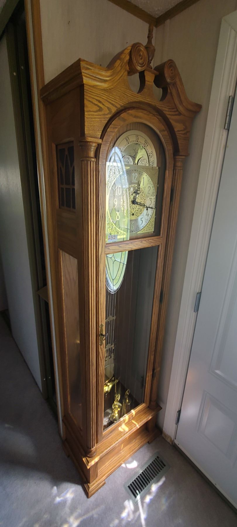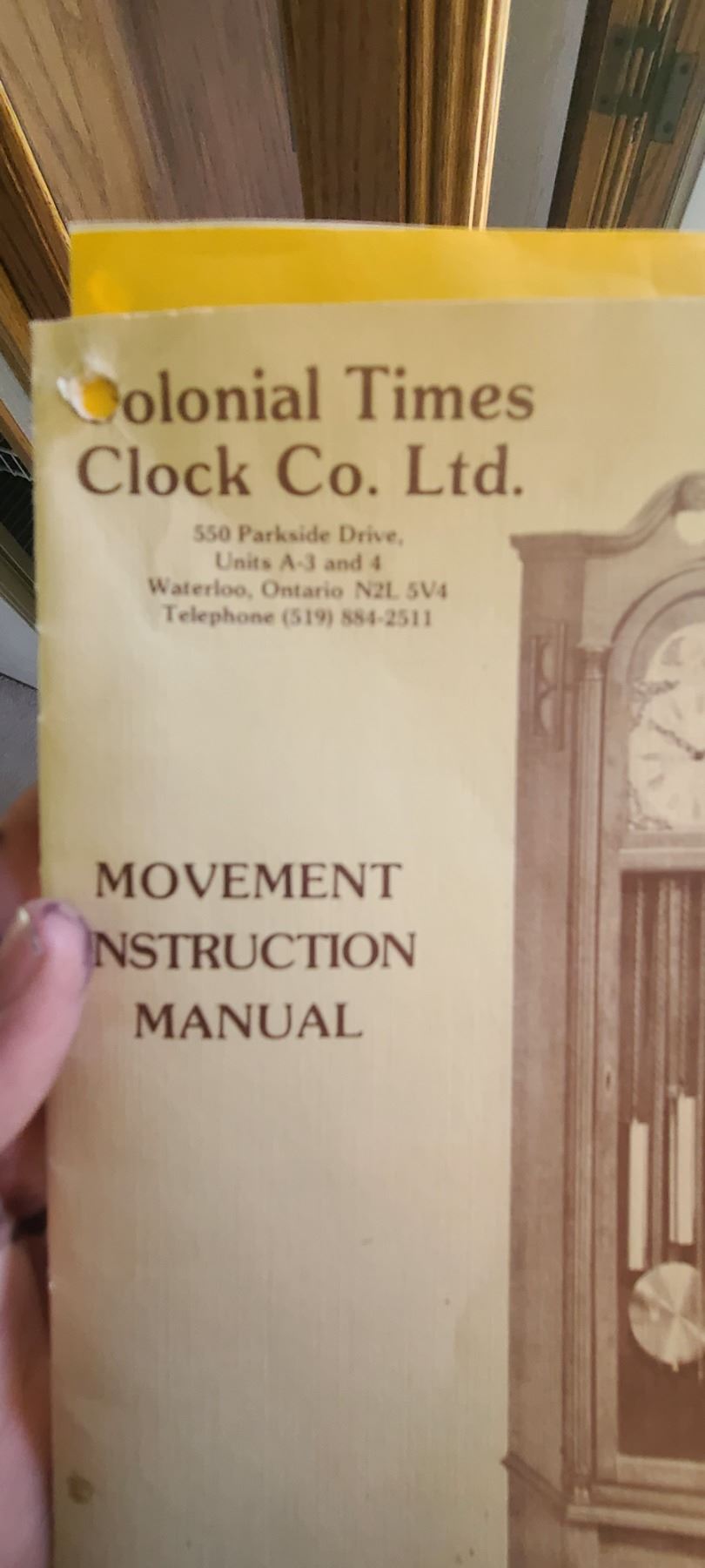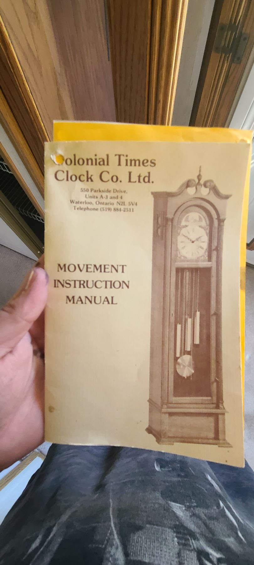 COLONIAL TIMES TUBULAR GRANDFATHER CLOCK- MANUAL WIND, COMES WITH KEY.