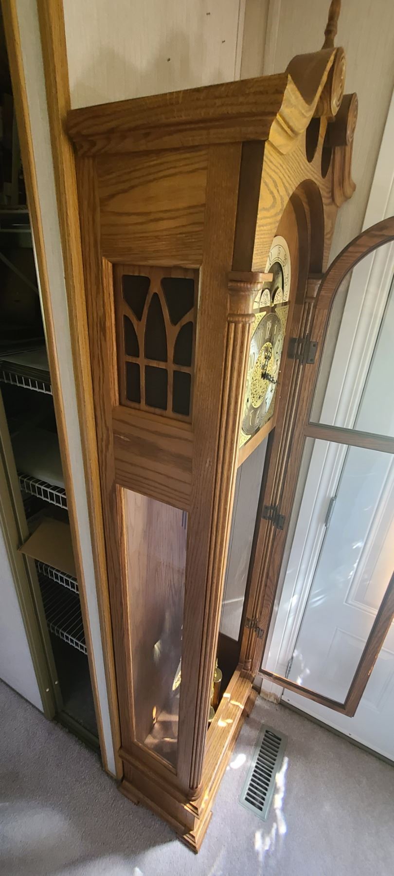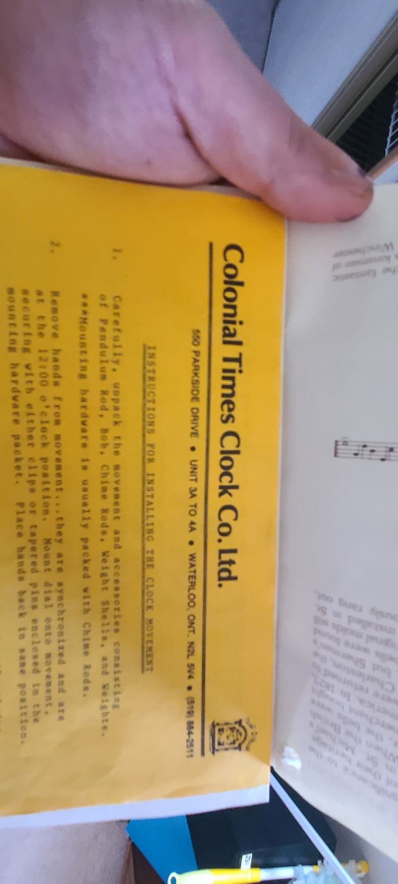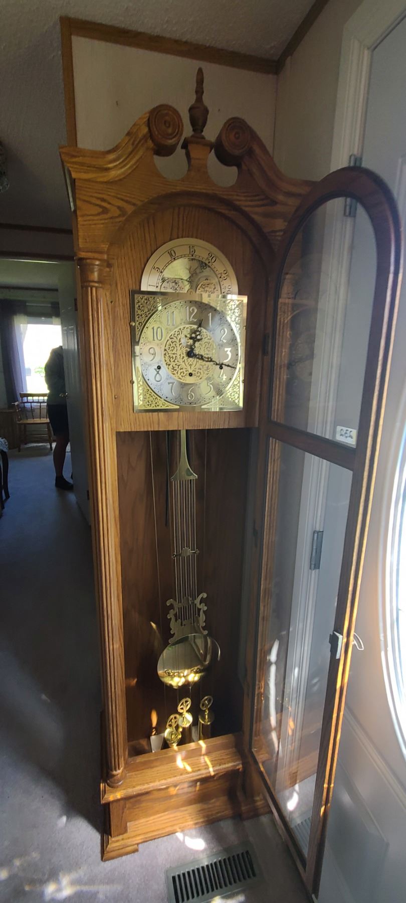COLONIAL TIMES TUBULAR GRANDFATHER CLOCK- MANUAL WIND, COMES WITH KEY.