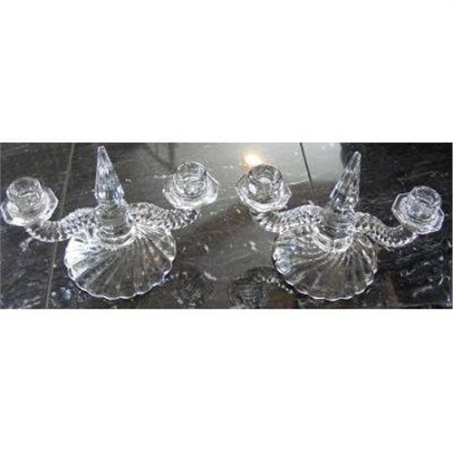 EXCELLENT PAIR OF COLONY CRYSTAL CANDLESTICK HOLDERS THAT ARE LARGE ENOUGH TO PLACE ON A FIREPLACE MANTLE OR DINING ROOM TABLE. EACH MEASURE 9" WIDE AND 6.5" HIGH