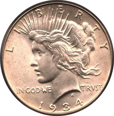 COLOR 1934 US SILVER PEACE DOLLAR-MS64+