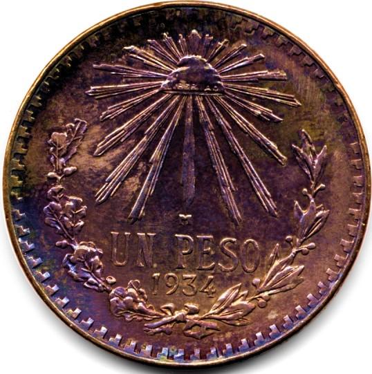 COLOR 1935 MEXICO SILVER UN PESO-GEM COLOR BU+