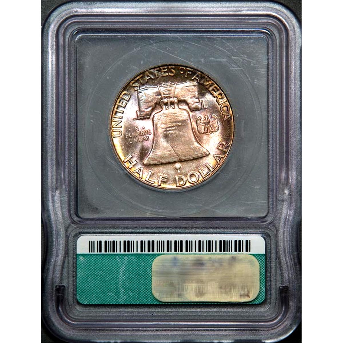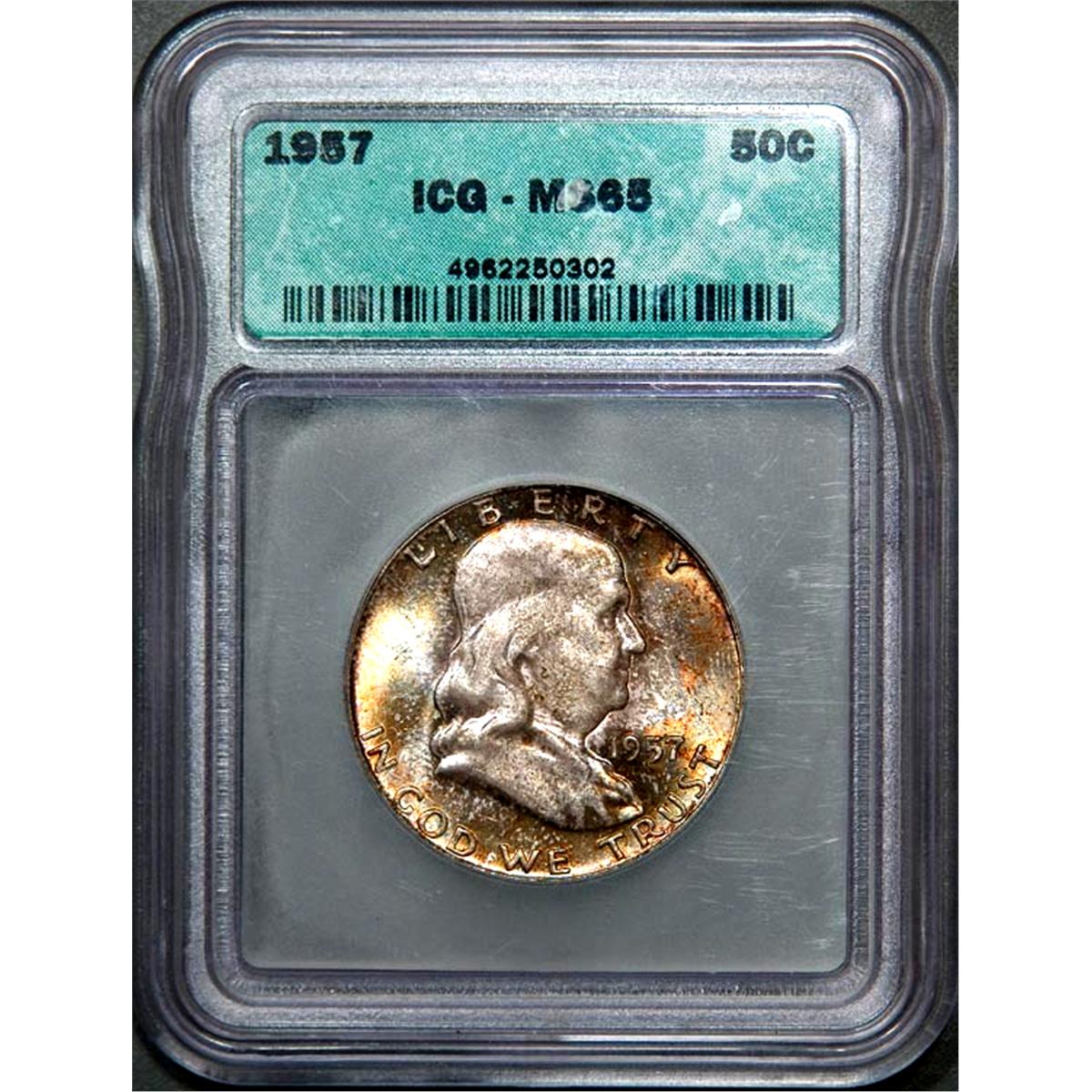 COLOR 1957 SILVER FRANKLIN HALF DOLLAR-ICG MS 65