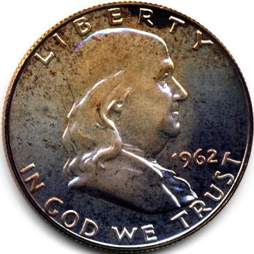 COLOR 1962 FRANKLIN SILVER HALF-PROOF