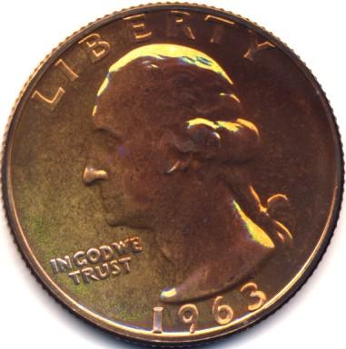 COLOR 1963 WASHINGTON SILVER PROOF QUARTER-BEAUTIFUL