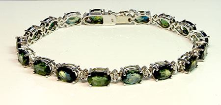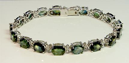 COLOR CHANGE SAPPHIRE 28.63CT / DIAMOND 0.28CT / 14K W/G BRACELET 60.34GRAM