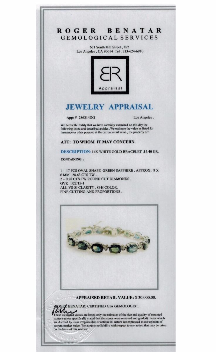 COLOR CHANGE SAPPHIRE 28.63CT / DIAMOND 0.28CT / 14K W/G BRACELET 60.34GRAM / GVK1/22/15(1)