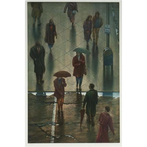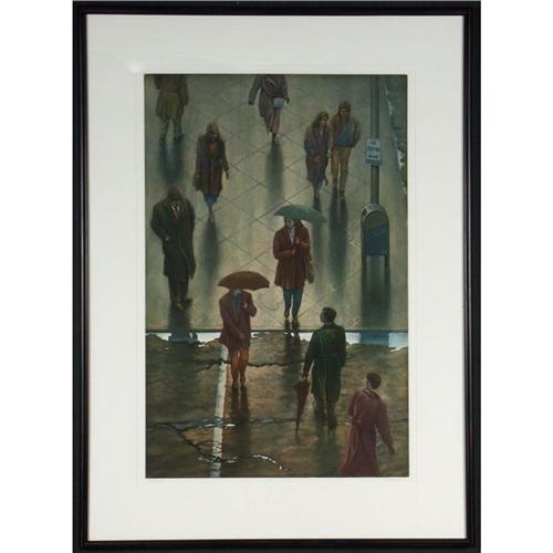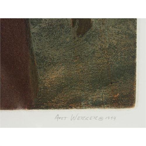 COLORED ETCHING ON PAPER 35'' x 23'', Art Werger (1955-), GA. ''Counterpoint''. Signed and dated ''1994'' lower right. Numbered 11/40 lower center. Titled lower left. Matted and placed in a black wood frame. More info. in the white binder.