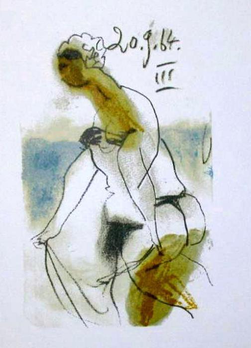 Medium: THIS RE-CREATION WAS PRINTED IN THE FALL OF 1970 UNDER THE PERSONAL SUPERVISION OF PABLO PICASSO. THEY ARE THE EXACT SIZE OF THE ORIGINAL DRAWINGS AND WERE PRODUCED THROUGH A UNIQUE PROCESS THAT EMPLOYS THE SAME TYPE OF MATERIALS AS USED BY PICASSO, INSTEAD OF THE USUAL PRINTING INKS. GREASE CRAYON, LITHOGRAPH TUSCHE, LEAD PENCIL, AND CHARCOAL ARE AMONG PICASSO'S MATERIALS USED IN MAKING THE RE-CREATIONS. THIS IS THE SOLE EDITION OF RE-CREATIONS THAT WILL EVER BE MADE OF THESE UNPUBLISHED DRAWINGS. TAKEN FROM PICASSO'S SKETCHBOOKS, AND WITH 3 PUBLISHER'S COLLABORATING IN ITS CREATION, EACH IMAGE IS DATED RESPECTIVELY BY THE ARTIST ACCORDING TO DAY, MONTH, AND YEAR. THE COMBINED EDITION HAS BEEN LIMITED TO 1998 ALBUMS FOR THE ENTIRE WORLD. THESE HAVE BEEN DIVIDED INTO 3 PARALLEL BUT SEPARATE EDITIONS, ONE FOR EACH OF THE PARTICIPATION PUBLISHERS, AND EACH SEPARATE EDITION HAS BEEN NUMBERED FROM 1 TO 666. THEY ARE PRINTED ON HANDMADE PURE RAG VE'LIN D' ARCHES PAPER AND HAND NUMBERED IN PENCIL.