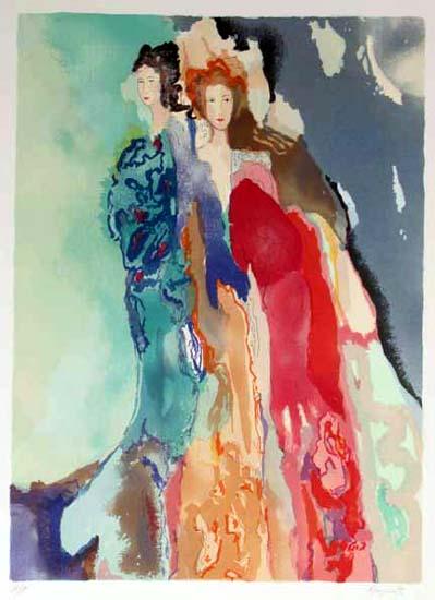 Jane Bazinet has emerged as an important American artist. Born in Basile, Louisiana, she began painting during the 60's. Bazinet produced her first graphics in the early 80's. Jane studied at Arizona State University for five years and continued studying art thereafter as an apprentice under the able tutelage of several painters. First exhibited in Scottsdale, Arizona, her paintings and prints soon found their ways into collections (both public and private) and galleries across the world. Although she has worked in numerous mediums, deftly treating a variety of themes, she is best known for her lyrical figurative work, which dwells at a mysterious crossroad between poetic realism and abstract expressionism. Her airy and whimsical women are adorned with flowing gowns in plush and tropical settings give off a feeling of relaxation and romance. She has been recognized as an artist with an extremely personal style and technique, which is romantic and contemporary. Her work is held in many public and private collections throughout the world and she has had many gallery shows throughout the United States and abroad. Her style and technique is contemporary as well as romantic and her works are very collectible.