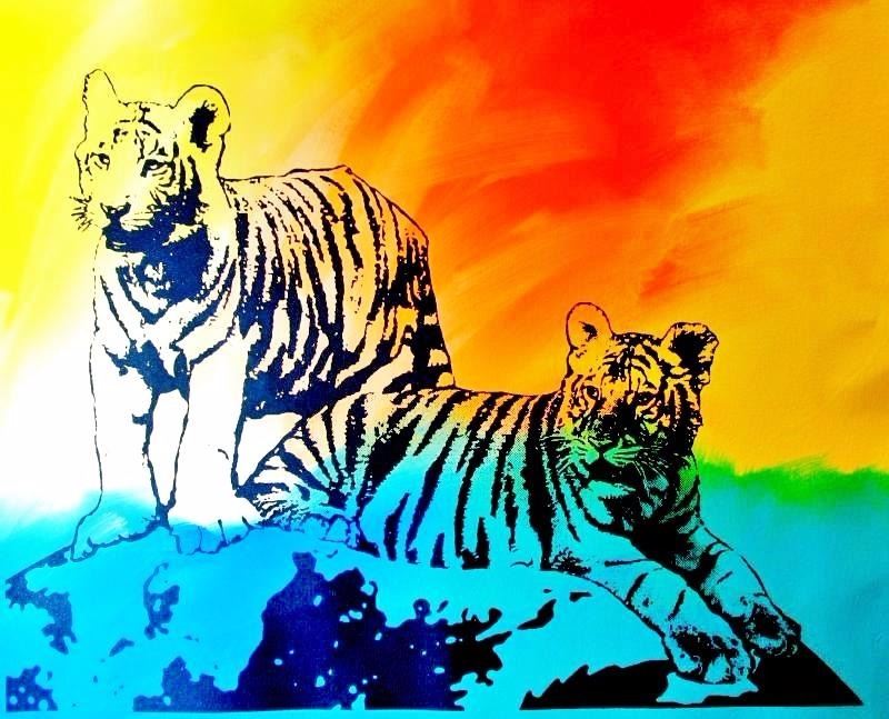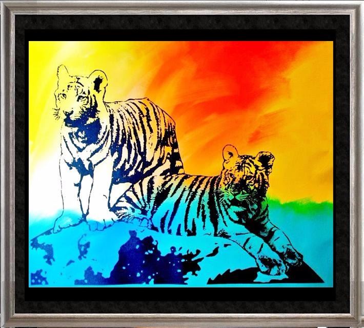 Artist: TONY AZZITO | Title of Art: TIGERS 3921 | Medium: HAND SIGNED ORIGINAL PAINTING WITH SILKSCREEN ON CANVAS | Edition Size: Original | Art Size: 30x37 | Offered Unframed. Framing Presentation are often shown for concept only. Read description: If framed, framed size will be given | Value: $ 1000