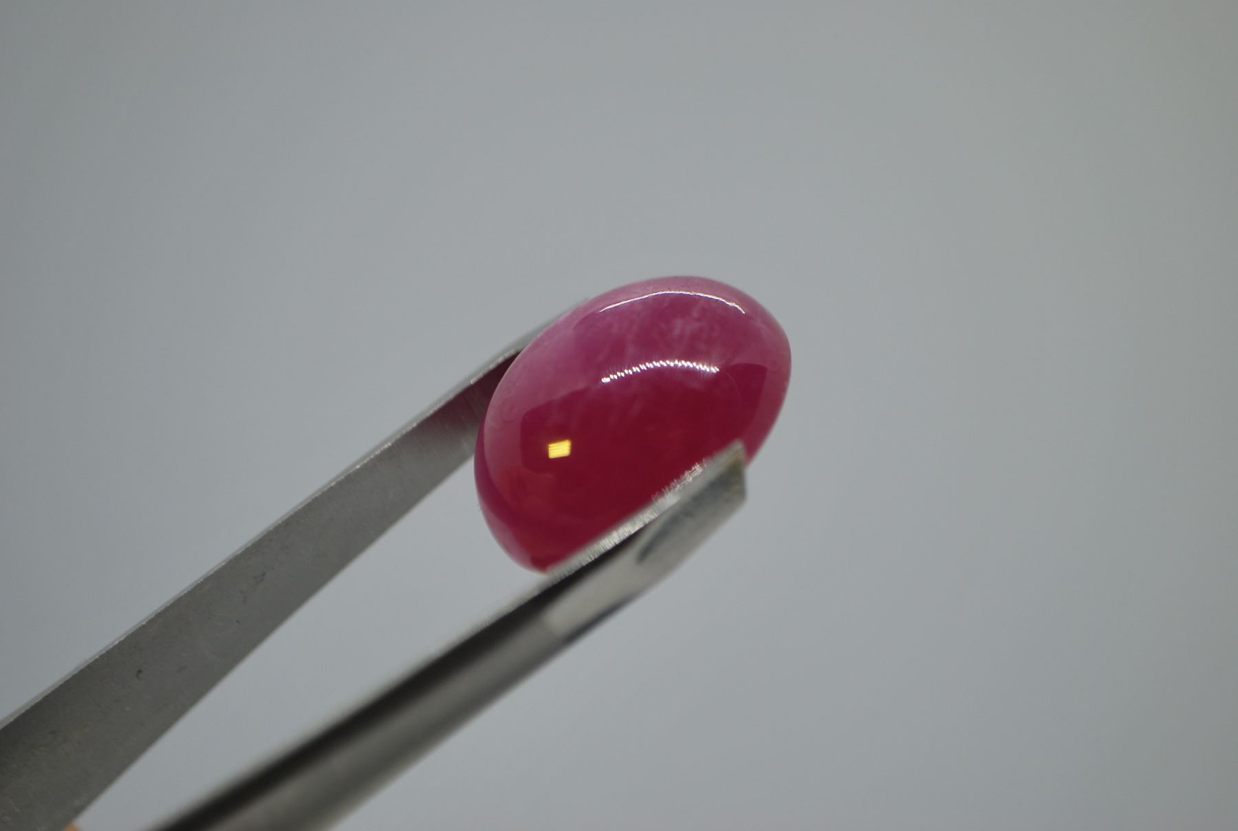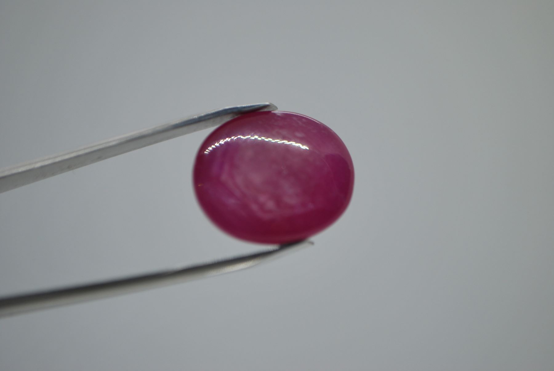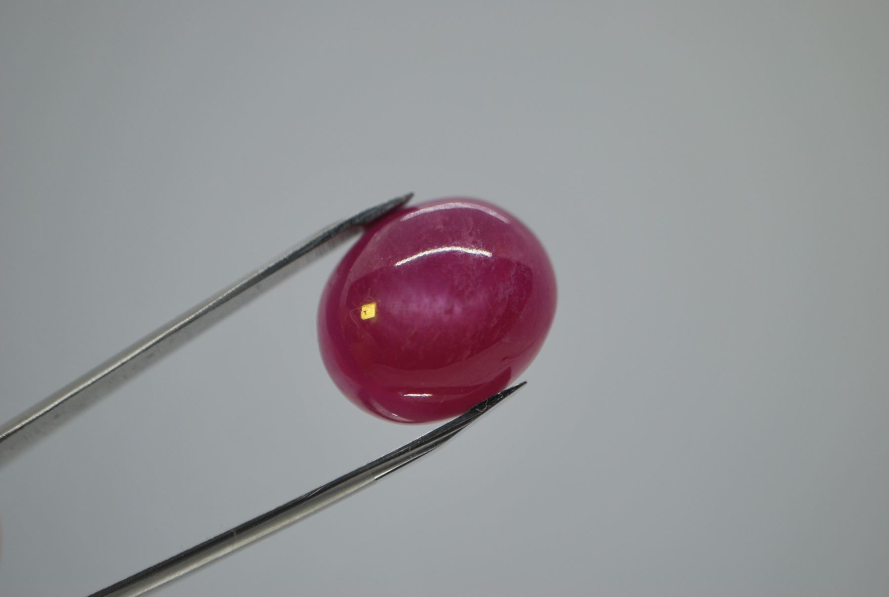 14.90 ct. 14.80 x 12.50 x 7.50 mm Colour PURPLISH RED, Shape: Oval Cut, Clarity: Translucent, Origin: Madagascar Possible GF treatment