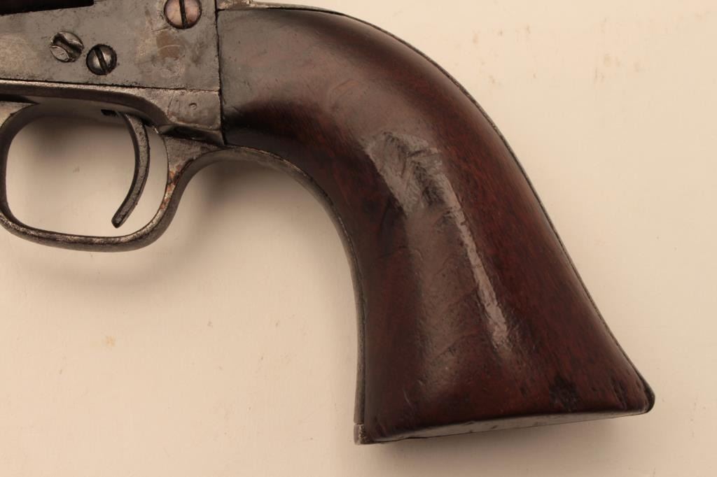 Colt 1851 Navy Revolver, London series with iron guard #41676, fair condition with good markings and visible matching numbers, the back strap has been broken at screw and with one “ear” missing. Uncleaned and out of attic appearance, type imported during civil war. Est:$600-1200