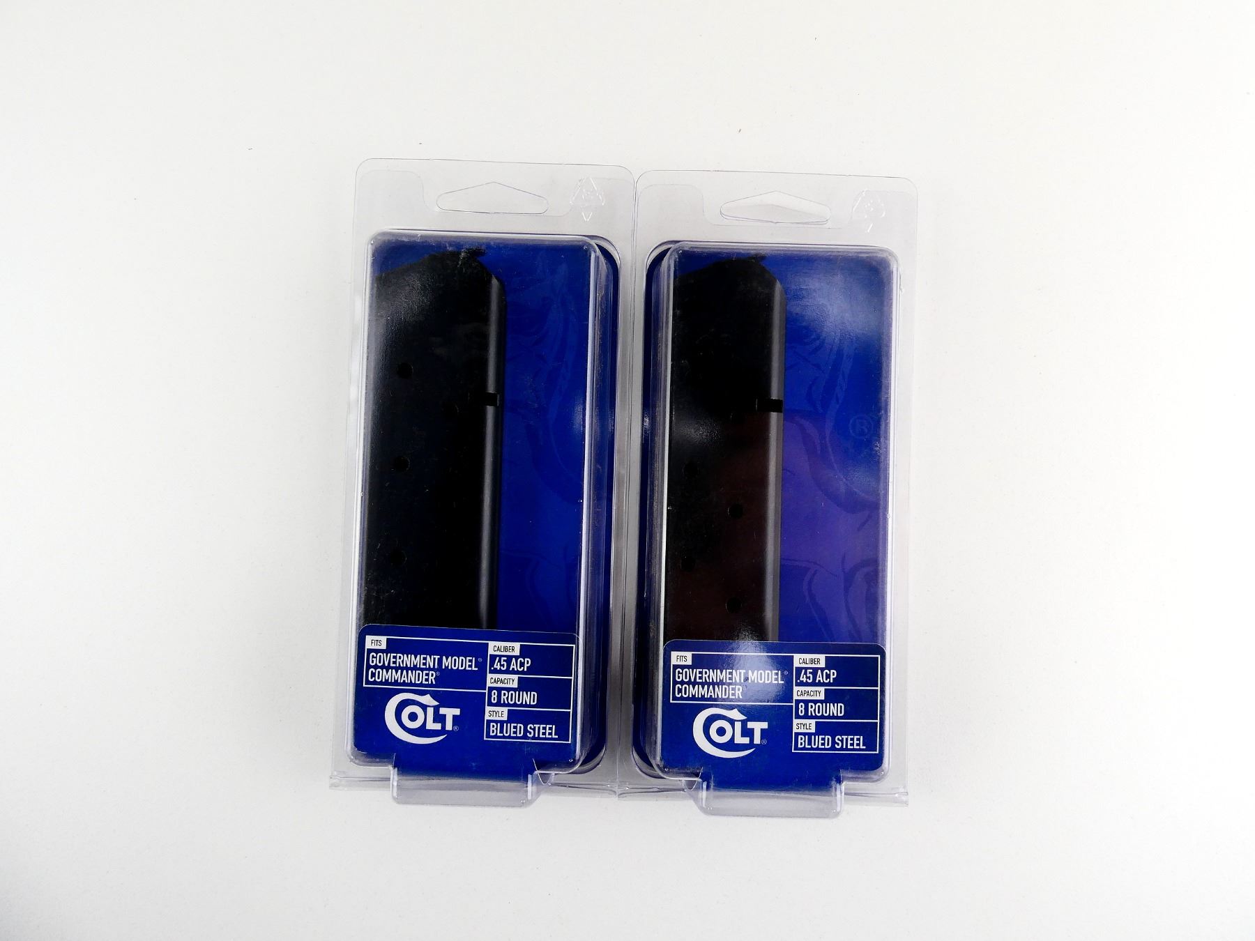 LOT INCLUDES; (2) 1911 .45 ACP MAGS, 8 RNDS, BLUED STEEL CONSTRUCTION, MARKED: "45 ACP", "COLT, 45 AUTO", ETC., APPEARS NOS IN ORIGINAL PACKAGING, COLT PART #: SP54926B-RP. SEE PHOTOS. PAL REQUIRED.